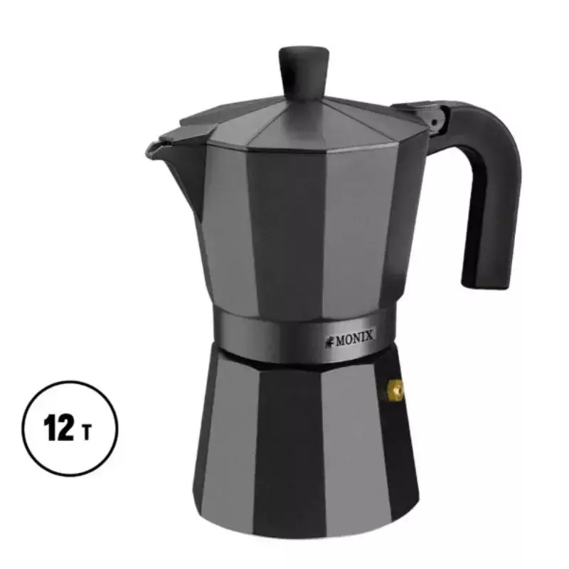 COLOR NEGRO, Cafetera Noir de aluminio con recubrimiento antiadherente.