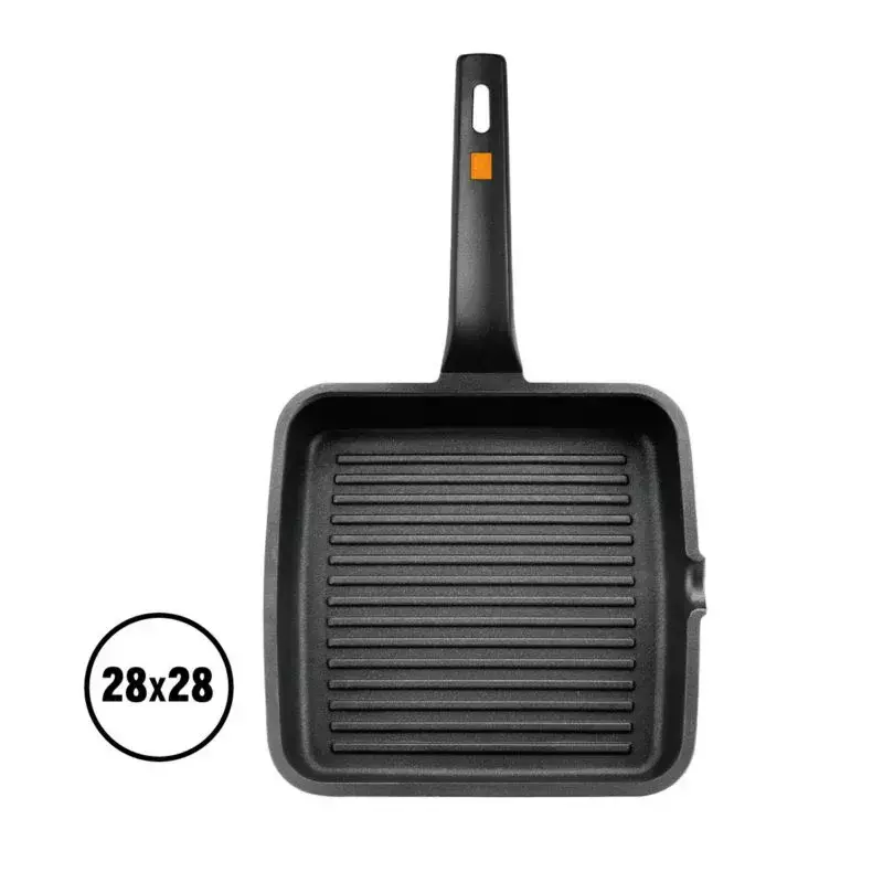 El grill con rayas Efficient reúne la eficacia y la calidad para un uso de cocina intensiva con los mejores resultados. Es un grill robusto y duradero gracias a su cuerpo fabricado en aluminio fundido y a la calidad de su antiadherente Platinum Plus libre de PFOA.Es apto para todas las fuentes de calor (incluida la inducción) gracias a su fondo difusor full induction. Además tiene un excelente reparto de la temperatura para una cocción perfecta de todas nuestras recetas.