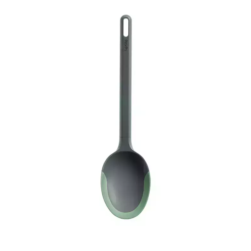 Cuchara de cocina perfecta para servir todo tipo de platos y salsas. La punta flexible de Silicona Platino es ideal para rebañar y proteger tus ollas, cazuelas y sartenes de posibles arañazos.